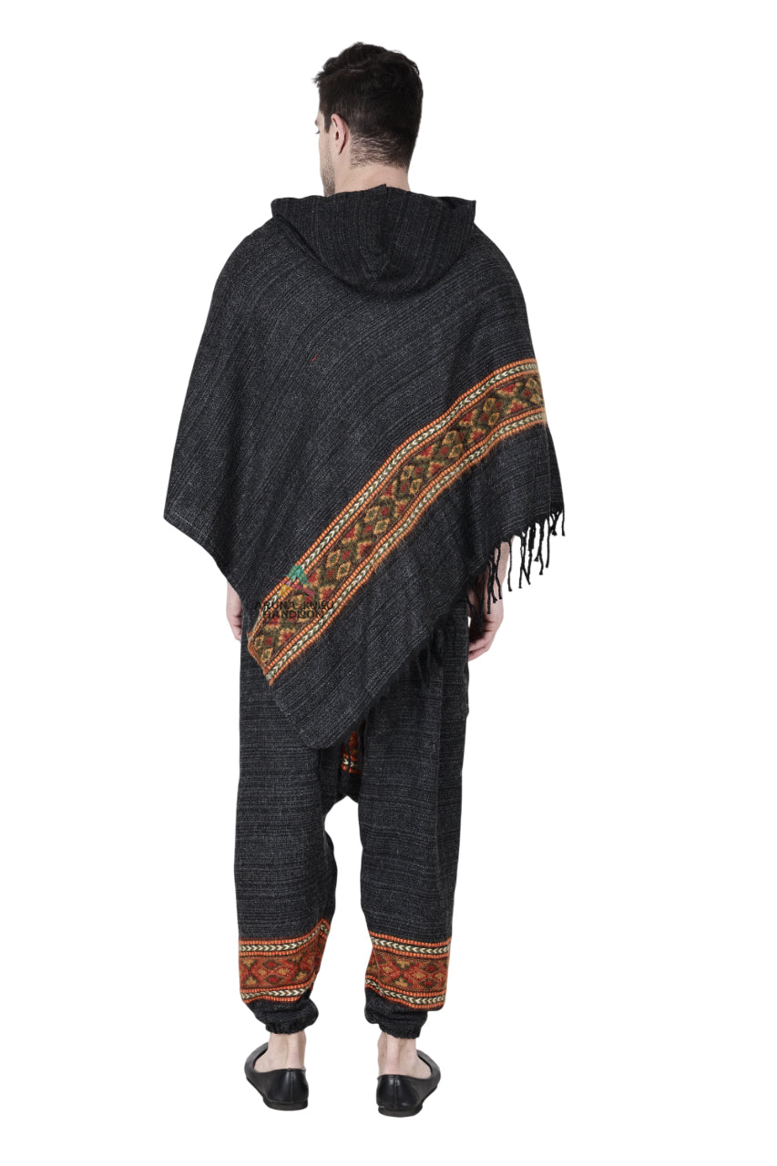 ogaram pajama ladies winter woolen warm pajamas for men gents Combo pajama and poncho black singal patti