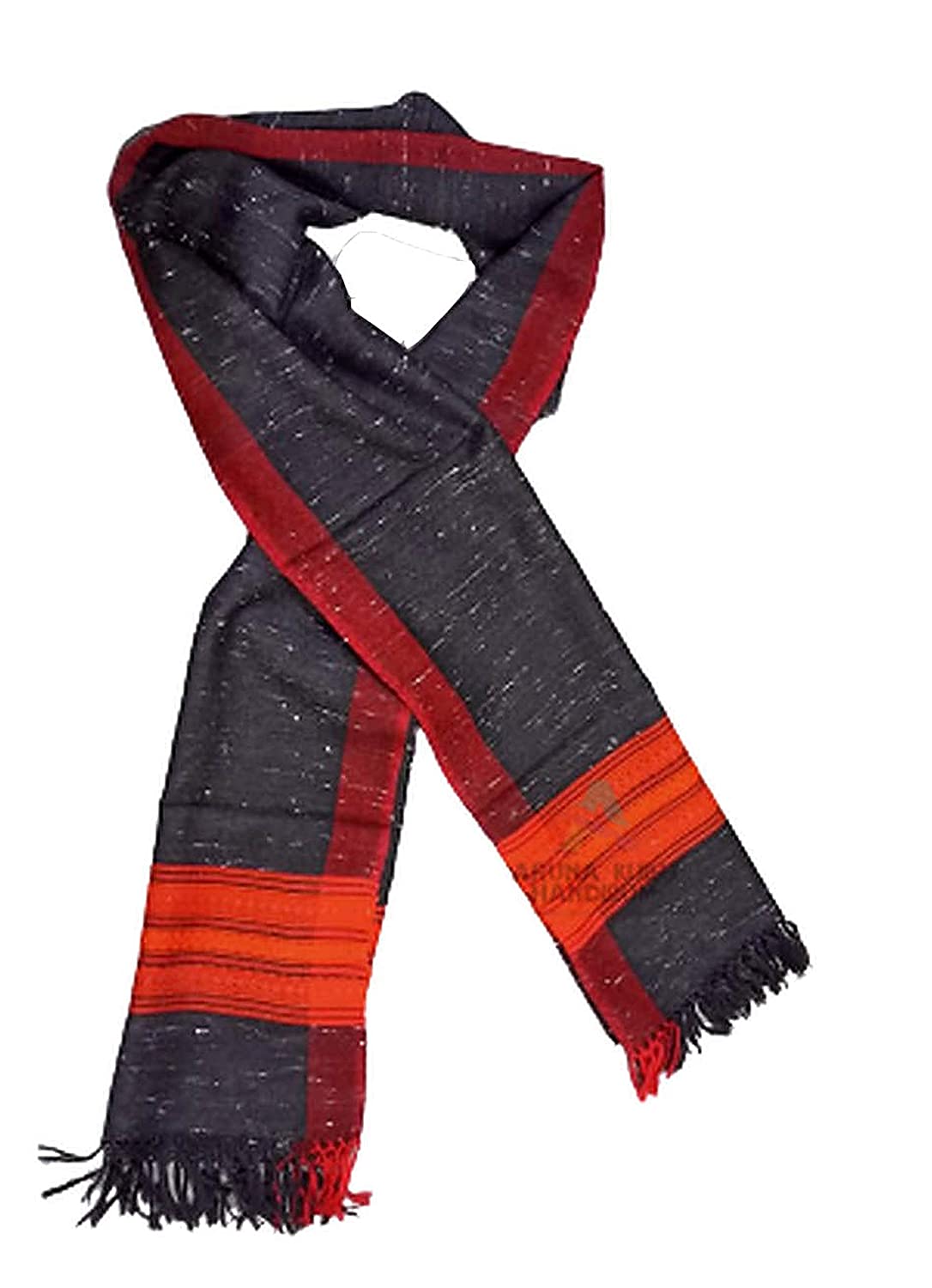 PURE YAK WOOL Women's Hand Woven Woollen Stole with Kullu Typical Weaving on Handloom (BLACK, Free Size)