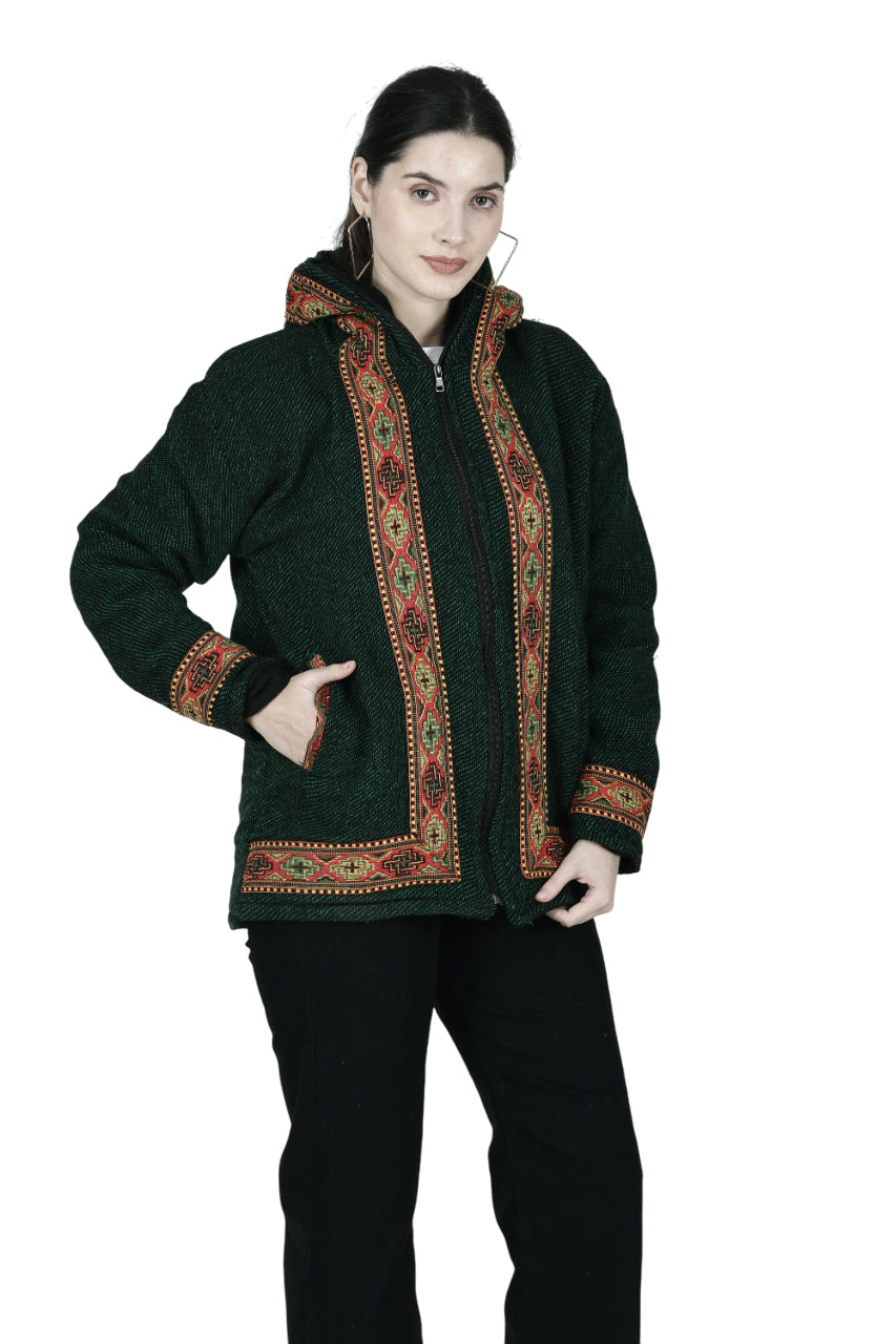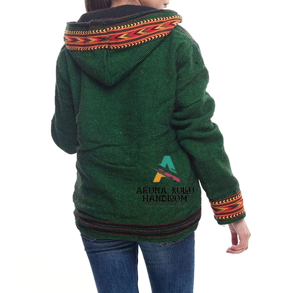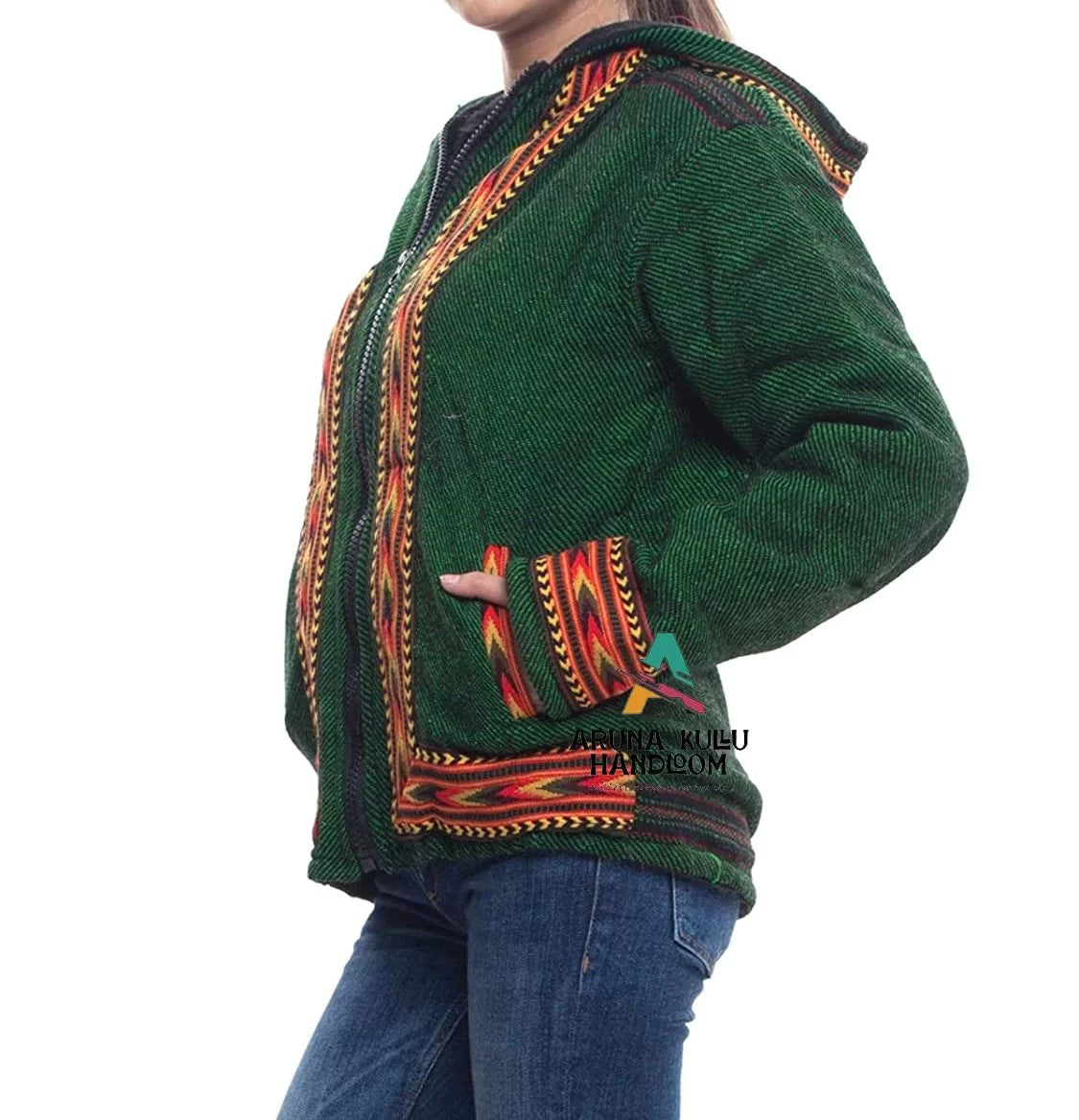 ZIPPER HOODIE Jacket for MEN & Women WITH KULLU PATTI WORK GREEN COLOR