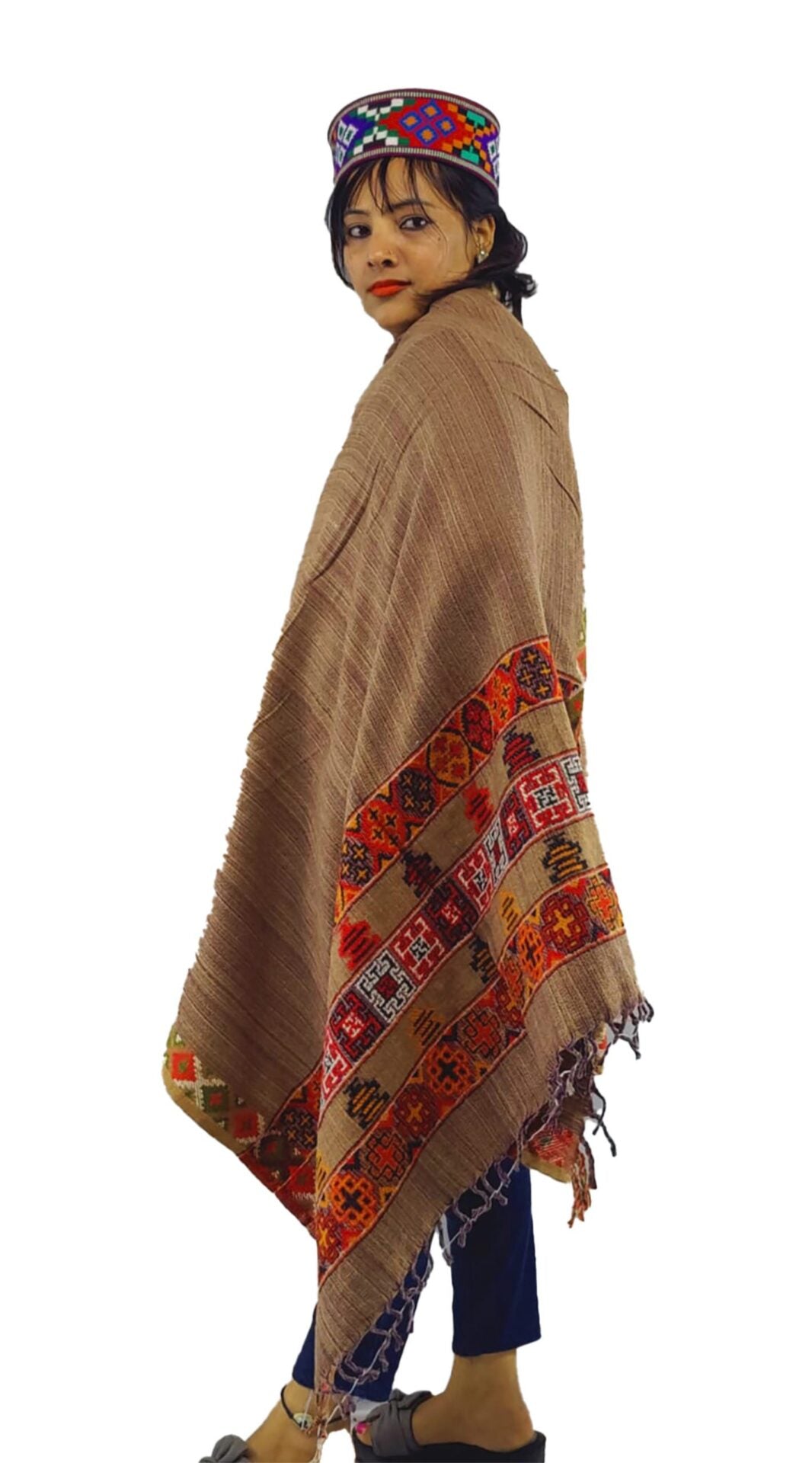 kullu shawls ANGORA Shawl with Beautiful Kullu Weaving Designed for Women and Girls beige new