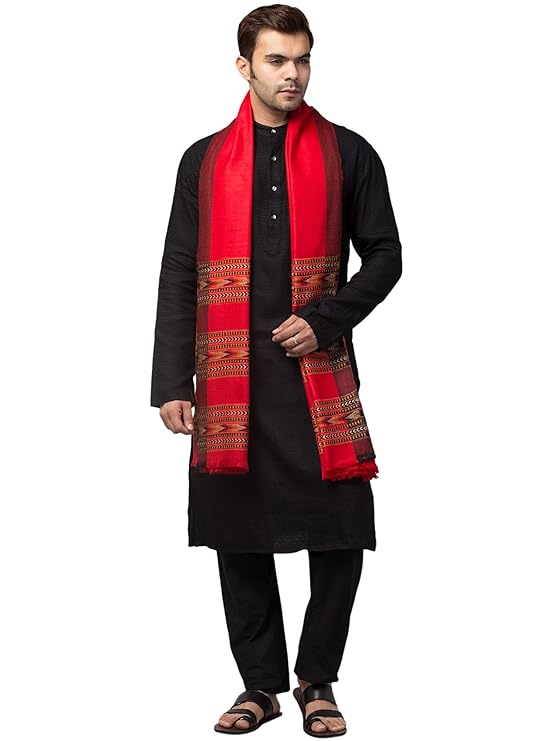 Men shawl Kullu Wool lohi Genuine Hand Woven for Men 3 patti red