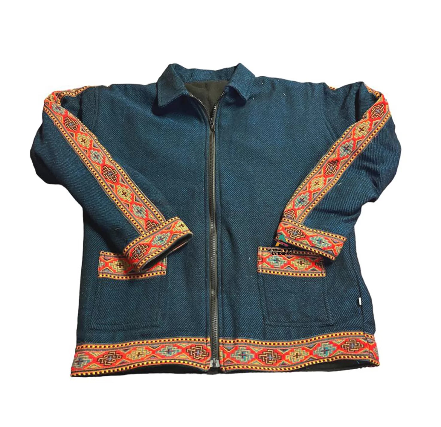 ZIPPER Jacket for MEN & Women blue with kullu border